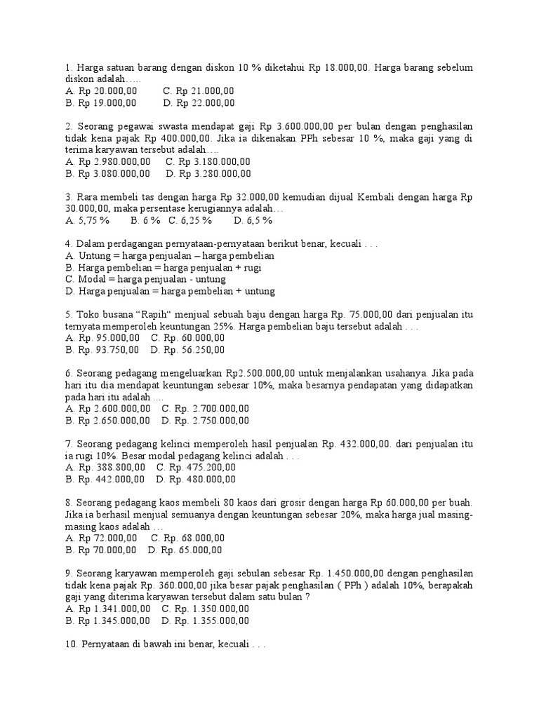 Edris Zahroini Edris Zahroini from edriszahroini.files.wordpress.com Seorang pedagang kaos membeli 60 kaos dari grosir dengan harga rp40.000,00. Seorang pedagang kaos membeli 60 kaos dari grosir dengan harga rp40.000,00. Seorang pedagang kaos membeli 60 kaos dari grosir dengan harga rp40.000,00. Seorang pedagang kaos membeli 60 kaos dari grosir dengan harga rp 40.000,00. Seorang pedagang kaos membeli 60 kaos dari grosir dengan harga rp40.000,00. Baju tersebut dijual dengan label harga rp9000000 dengan bertuliskan disko. Seorang pedagang tas membeli 70 kaos dari grosir. Seorang pedagang tas membeli 70 kaos dari grosir.